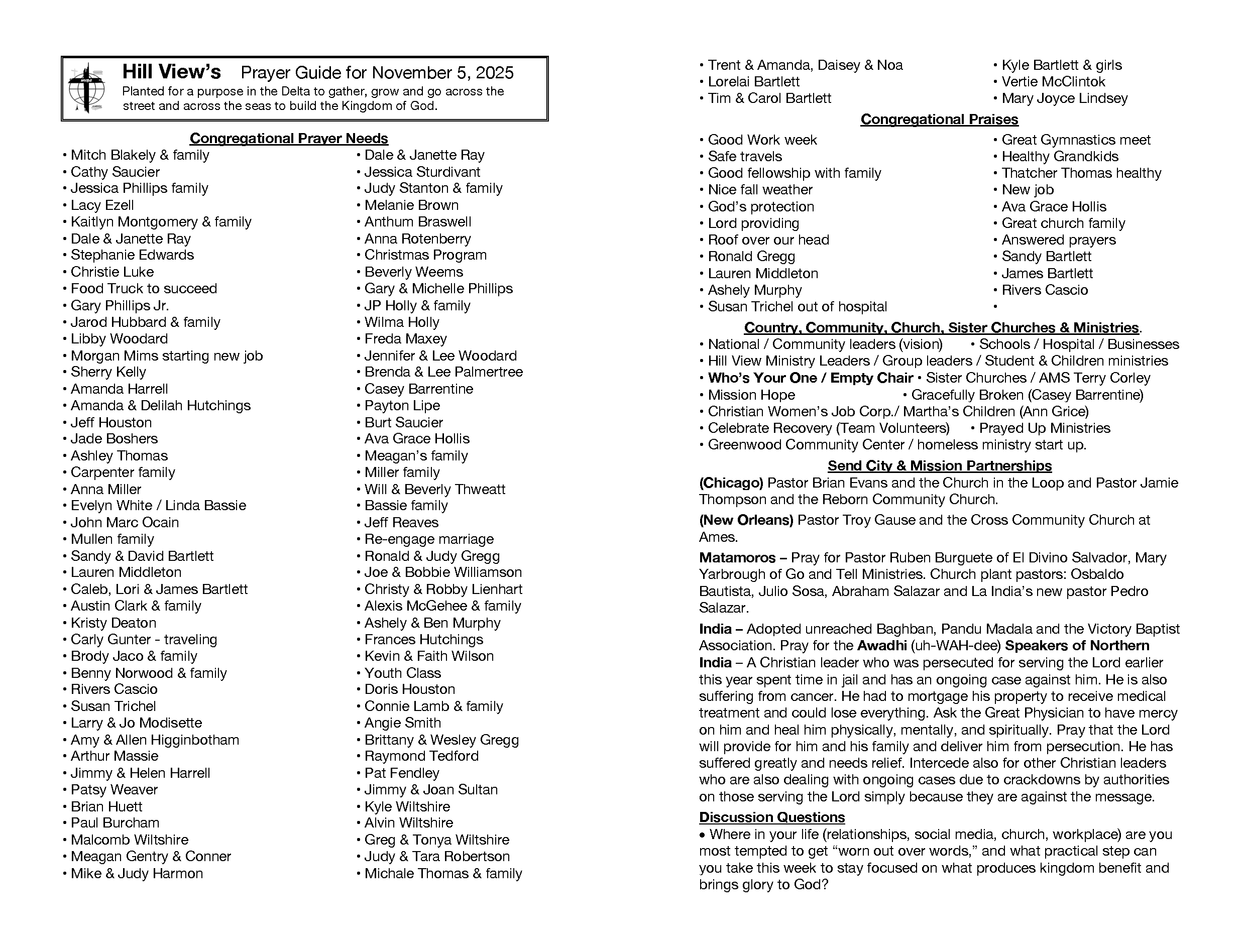 Weekly Prayer Guide